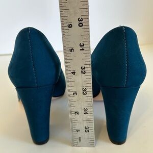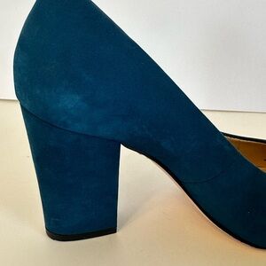 Elegant blue suede heels. Chunky heel design. Perfect for any occasion.