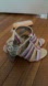 Vibrant heels with pink, orange, and cream straps. Ideal for adding flair.