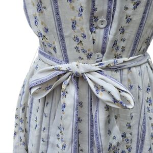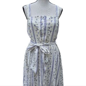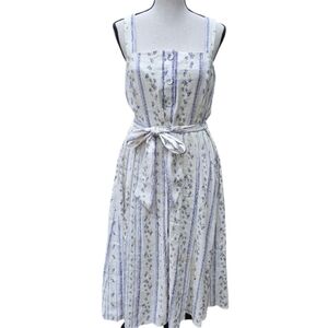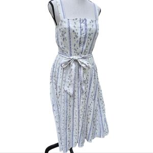 ANTONIO MELANI Cream and Blue Floral Linen Prarie Patterned Midi Dress