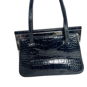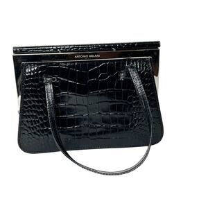 ANTONIO MELANI Croc Embossed Mini Tote Purse Shoulder Bag Handbag Black Leather