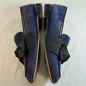 ANTONIO MELANI Dark Blue Suede Loafers with Black Bow Women’s Size 7
