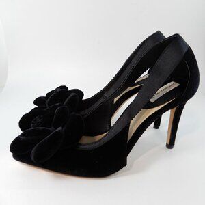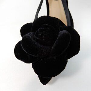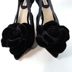ANTONIO MELANI Ester Velvet Black Rose Flower Heels Pumps Size 6 Pointed Toe NEW