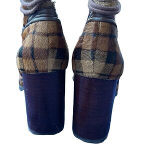 ANTONIO MELANI GRAYCIEE Plaid Calf Hair Leather Animal Print Fur High Block Heel Ankle Boots Size 7