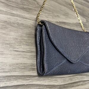 ANTONIO MELANI LEATHER GRAY ENVELOPE CLUTCH WITH GOLD CHAIN