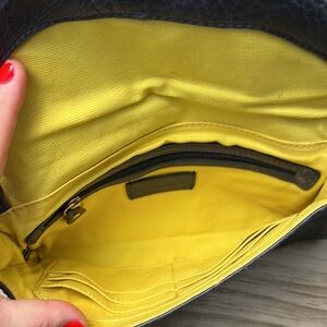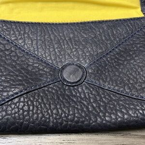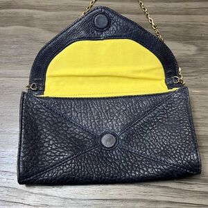 Women’s Antonio Melani gray soft leather clutch envelope bag with yellow interior & gold chain detail that can be used as shoulder bag or tucked in clutch style. So cool!! Inside of bag clean. Very good gently used condition. Measurements in pics. Please check out all pics and comment below with any questions. Made in Italy 🇮🇹