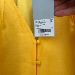 Antonio Melani, NWT, size 8, vibrant sunshine yellow, pleated back, flowy and loose relaxed style, button cuff, comfy yet dressy, balloon sleeves, v-neck, lined