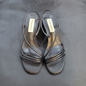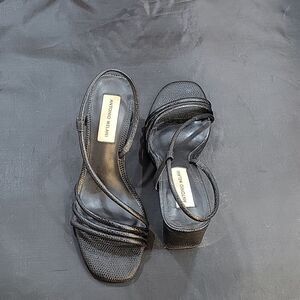 ANTONIO MELANI SQUARE TOE LOW BLOCK HEEL SANDAL SIZE 7M COLOR BLACK MULTI-STRAP MADE WITH LEATHER SOLE BALANCE MANMADE MATERIALS LINING INSOLE MATERIALS CUSHIONING INSOLE FOOTBED HEEL HEIGHT MEASUREMENTS APPROX 3"INCHES THIS ITEMS IS PRE-OWNED EXCELLENT CONDITION WITH ONLY LIGHT SIGNS OF WEAR IF ANY CHECK THE PICTURES