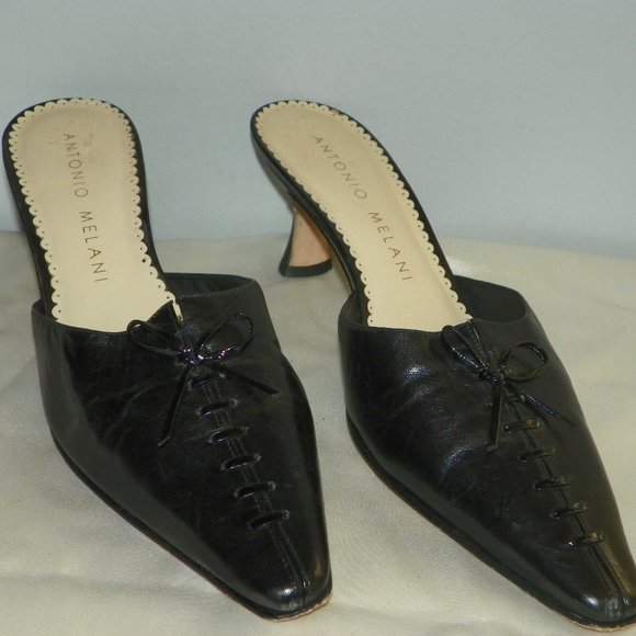 Antonio Melani ladies' slide pumps in black leather. Gently used but like new, inside & out. Sz 8 M