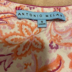 ANTONIO MELANI Multi color floral print v neck sleeveless, silk top. Front is lined. Size small. Excellent condition. Hardly worn.