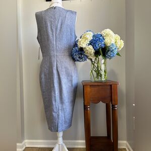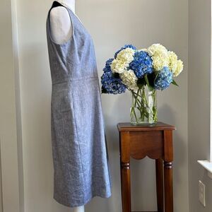 This ANTONIO MELANI dress in gray is a sleeveless sheath style, perfect for casual or work occasions. It features a crew neck and a classic silhouette that falls to mid-calf, offering a minimalist and versatile design. The soft, textured fabric ensures comfort and elegance throughout the day.