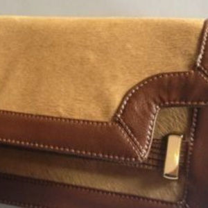 Dark Brown Smooth Leather front Trim & all back. Front has Camel Faux cow hairs, as shown in photo.