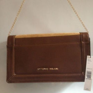 ANTONIO MILANI Brown Leather Textured Shoulder Bag