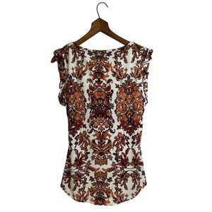 ANTONIO MILANI Tank Top Women’s sz. MEDIUM Orange Sleeveless Blouse, Floral Print. In good pre-owned condition.