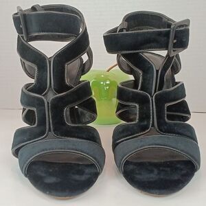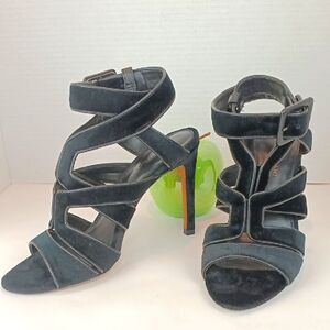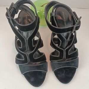 ANTONIO MELANI Aveet Women Black Strappy Velvet Open Toe Heels sx 8.5 M
