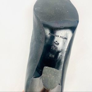 ANTONIO MELANI Black Leather Heeled Loafers. Kitten heels. Wear on soles but otherwise in great condition!