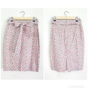 ANTONIO MELANI Floral Print Pencil Skirt Tie Belt Cotton Pink Cream Size 2 NWOT