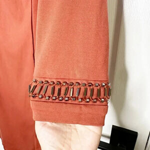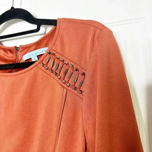 ANTONIO MELANI Size 8 Long Sleeve Orange Knit Metallic Beaded Dress