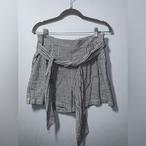 ANTRHOPOLOGIE Gingham Belted Shorts by Cartonnier Deep navy & cream Size 6 EUC