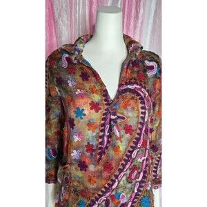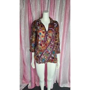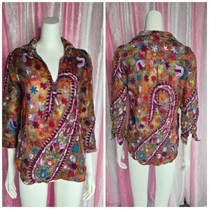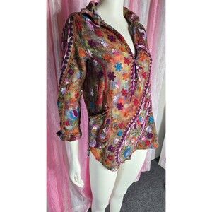 ANU 100% Wool Unique Floral Embroidered Boho Hippie Colorful Blouse Size Medium