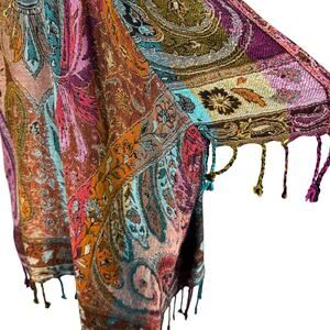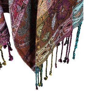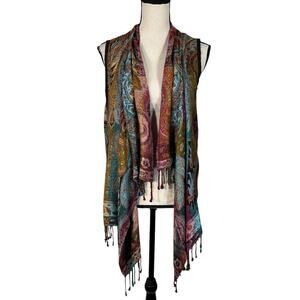 ANU Medium Artsy Vest Jacket Floral Reversible Draped Fringe Open Front Boho New