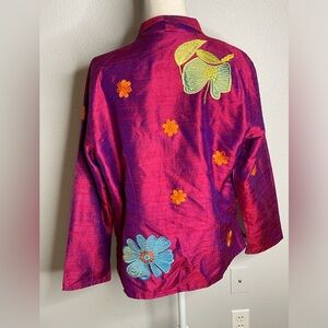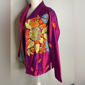 ANU by Natural 100% Silk Sz S Multi Color Floral Boho Jacket Womens Art To Wear