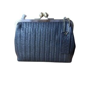 ANUSCHKA Black Woven Genuine Leather Handbag Kiss Lock Clutch Shoulder Bag Purse