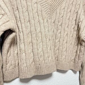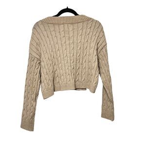 ANWND Cropped Cable Knit Sweater Womens Sz M Oatmeal Color V-neck