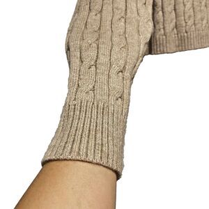 The ANWND Cropped Cable Knit Sweater in women's size M is a stylish and versatile addition to any wardrobe. This oatmeal color sweater features a classic solid pattern with a cable-knit style, making it perfect for outdoor, classic, or preppy looks. The long sleeves, crew neck neckline, and pullover style provide comfort and ease of wear. Made from a blend of polyester and acrylic, this sweater offers stretch for added flexibility and a flattering fit. Perfect for everyday wear or dressing up for a more polished look, this ANWND sweater is a must-have for any fashion-forward woman.