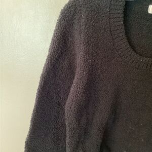 ANWND SIZE LARGE BLACK CREW NECK LONG SLEEVE CROPPED TEDDY SWEATER SOFT COZY
