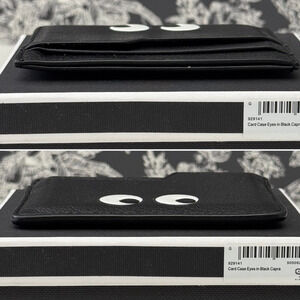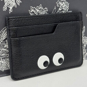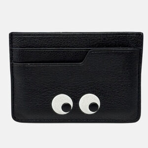 ANYA HINDMARCH Eyes Card Case Holder Black Capra Leather Goatskin with Box