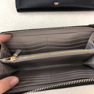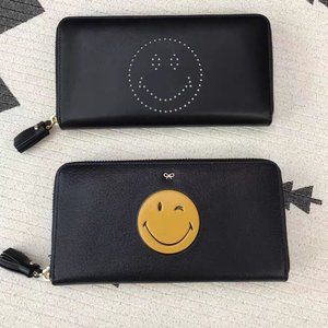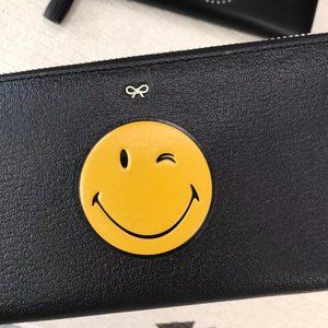 ANYA HINDMARCH Smiley Wink Long Round Zipper Wallet Purse Leather Black