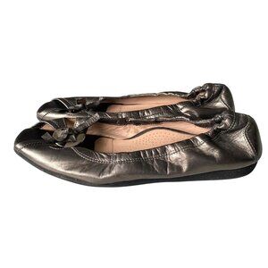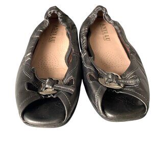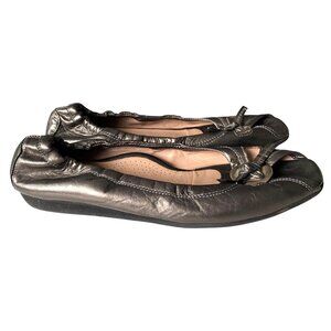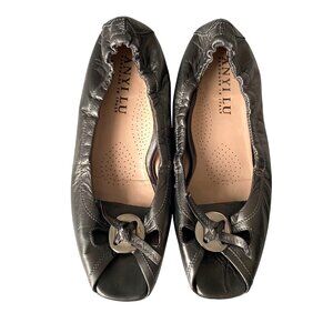ANYI LU HARMONY Peep-Toe Ballet Flat Metallic Leather Green Sz 37.5 EU 7 US