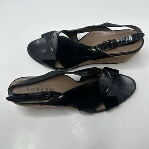ANYI LU Made in ITALY BlLACK PATENT LEATHER WEDGE SANDAL MADE in ITALY SIZE 41 M