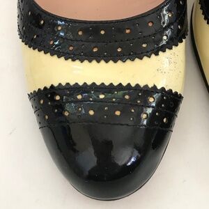 ANYI LU Patent Leather Pumps Black Yellow Heels Women’s Size 9 EU 39.5