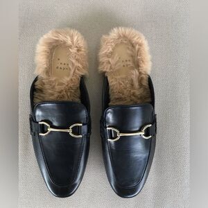 A New Day Black Loafers with Tan Faux Fur