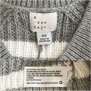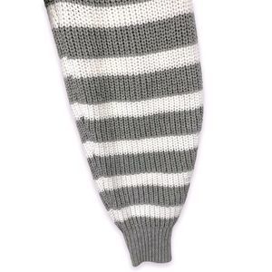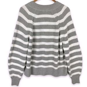 A New Day Gray Striped V-Neck Balloon Sleeve Pullover Chunky Knit Sweater XS