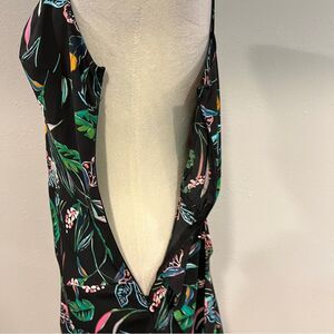 A New Day black asymmetrical dress with a vibrant floral pattern size small