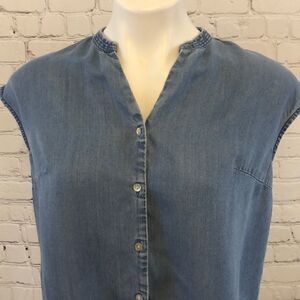 A New Day sleeveless chambray top with waist tie • 22” shoulder to hem • 20” armpit to armpit