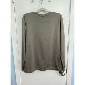 A'Nue Ligne Shirt Medium Olive Green Minimalist Stretch Knit Office Layering, great condition.