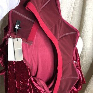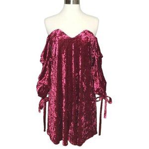 AO Wine Red Crushed Velvet Loose Off Shoulder Dress Size Small NWT