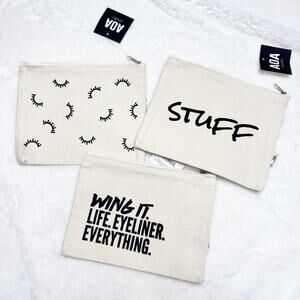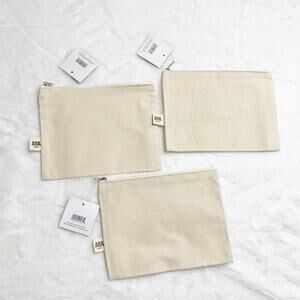 AOA Cream Canvas Makeup Zipper Travel Bags Set of 3 NEW