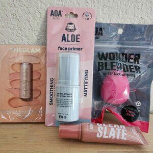 AOA Makeup Beauty Bundle SheGlam Foundation Aloe Face Primer Wonder Blender Lot
