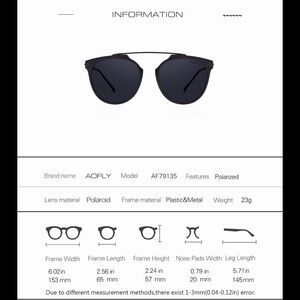 High quality material black metal frame with black lenses. Authentic sunglasses produced by company AOFLY including an original case with cleaning cloth. If you would like a different color, please feel free to request it and we will get it for you.
