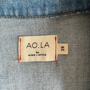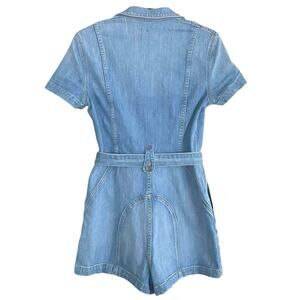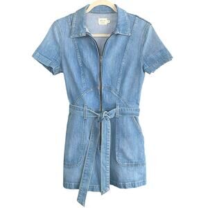 AO.LA Alice + Olivia Denim Romper Short Jumpsuit Size 29 Front Zipper Tie Sash