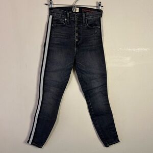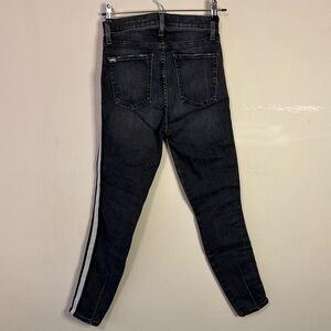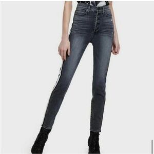 AO.LA Good High-Rise Exposed Button Fly Tuxedo Stripe Jean in Black Magic