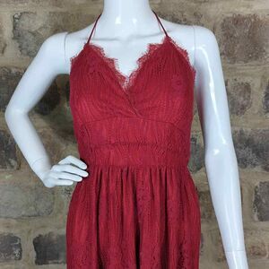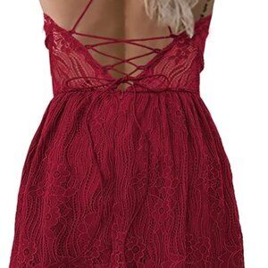 AOOKSMERY red lace laced back dress Woman's size small Mini Lace Up Back Party