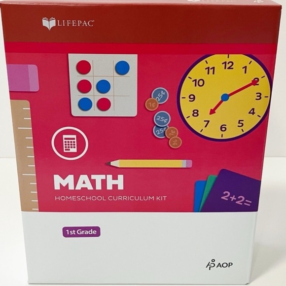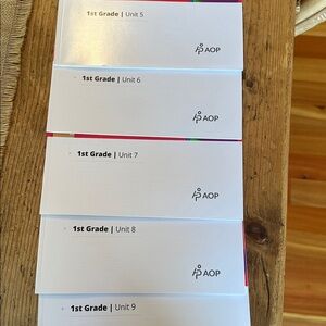 AOP 1st grade math curriculum box, includes student books 5-9 and teacher guides part 1 and part 2 all brand new