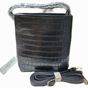 Vegan Black Croc-Embossed Leather with gold tone hardware.