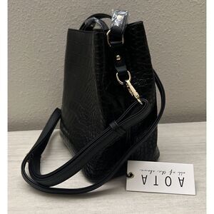 AOTA Elena Crossbody Bucket Bag Black Vegan Croc Rachael Zoe Fall Curation