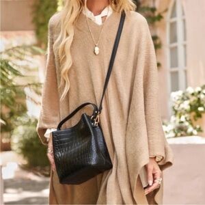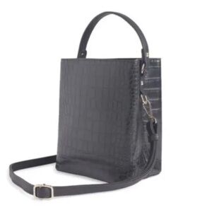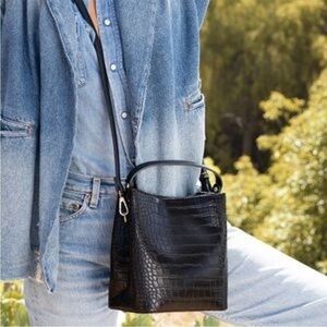 AOTA Elena Vegan Black Mock Croc Embossed Bucket Crossbody Bag Black NWT